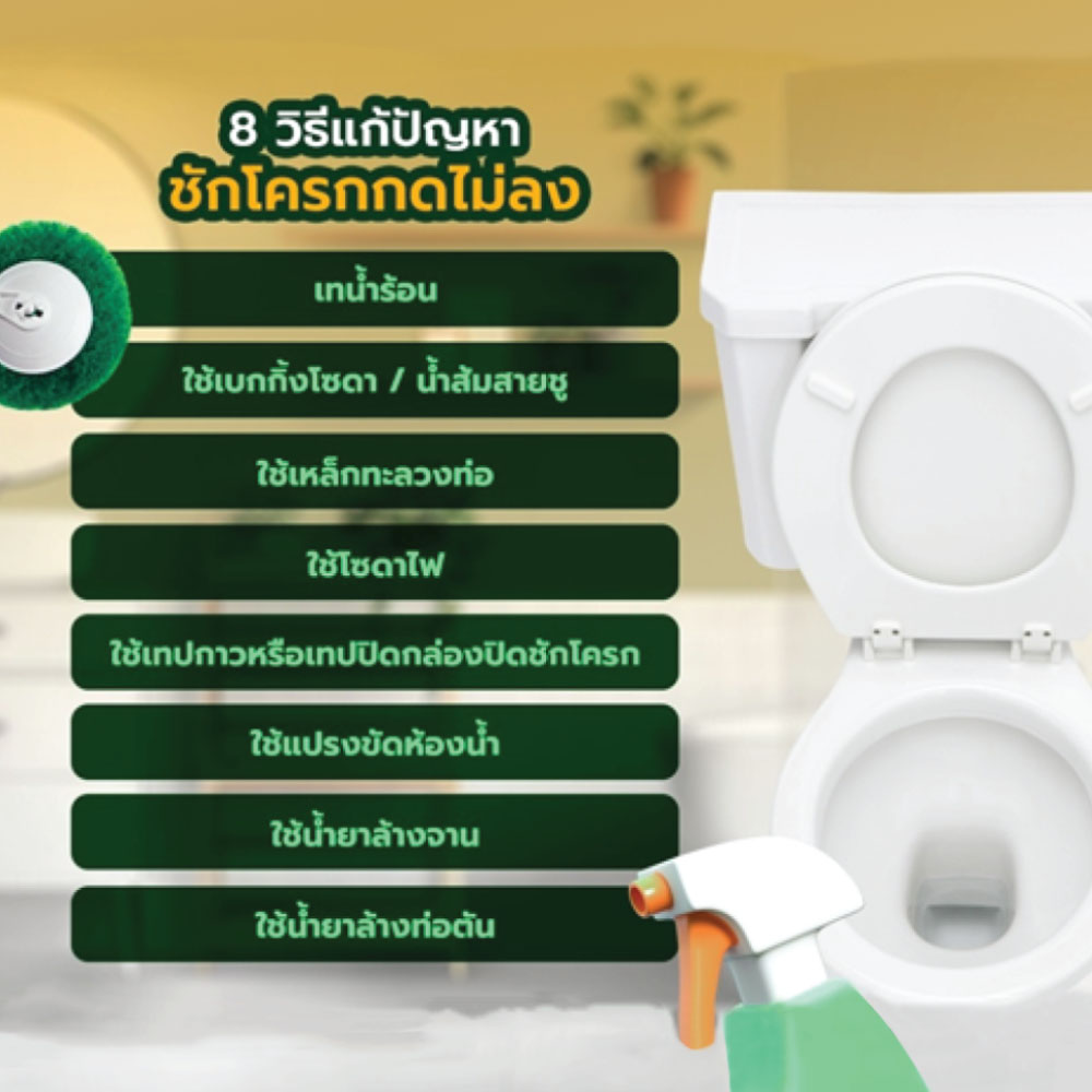 เป็นอย่างไรกันบ้างกับทริคดีๆ ที่เรานำมาฝาก ต้องบอกว่าทั้ง 9 วิธีนี้ ส่วนใหญ่สามารถใช้ของที่มีอยู่ในบ้านแก้ปัญหาได้ด้วยตัวเอง ทว่าถ้าชักโครกบ้านใครที่ทำตามวิธีดังกล่าวแล้วไม่ได้ผล ทำวิธีนั้นก็แล้ว วิธีนี้ก็แล้ว ชักโครกก็ยังกดไม่ลง แนะนำให้เรียกผู้เชี่ยวชาญ หรือช่างมืออาชีพมาตรวจสอบและแก้ไขปัญหาต่อไป ทางที่ดีควรป้องกันไว้ก่อนแก้ไข ด้วยการเลือกชักโครกคุณภาพดี ผ่านการรับรองมาตรฐาน ประกอบกับมีกระบวนการติดตั้งที่ดี ก็ยิ่งช่วยให้ใช้งานได้ดี รวมทั้งสามารถช่วยป้องกันปัญหาส้วมตัน และชักโครกกดไม่ลงได้
